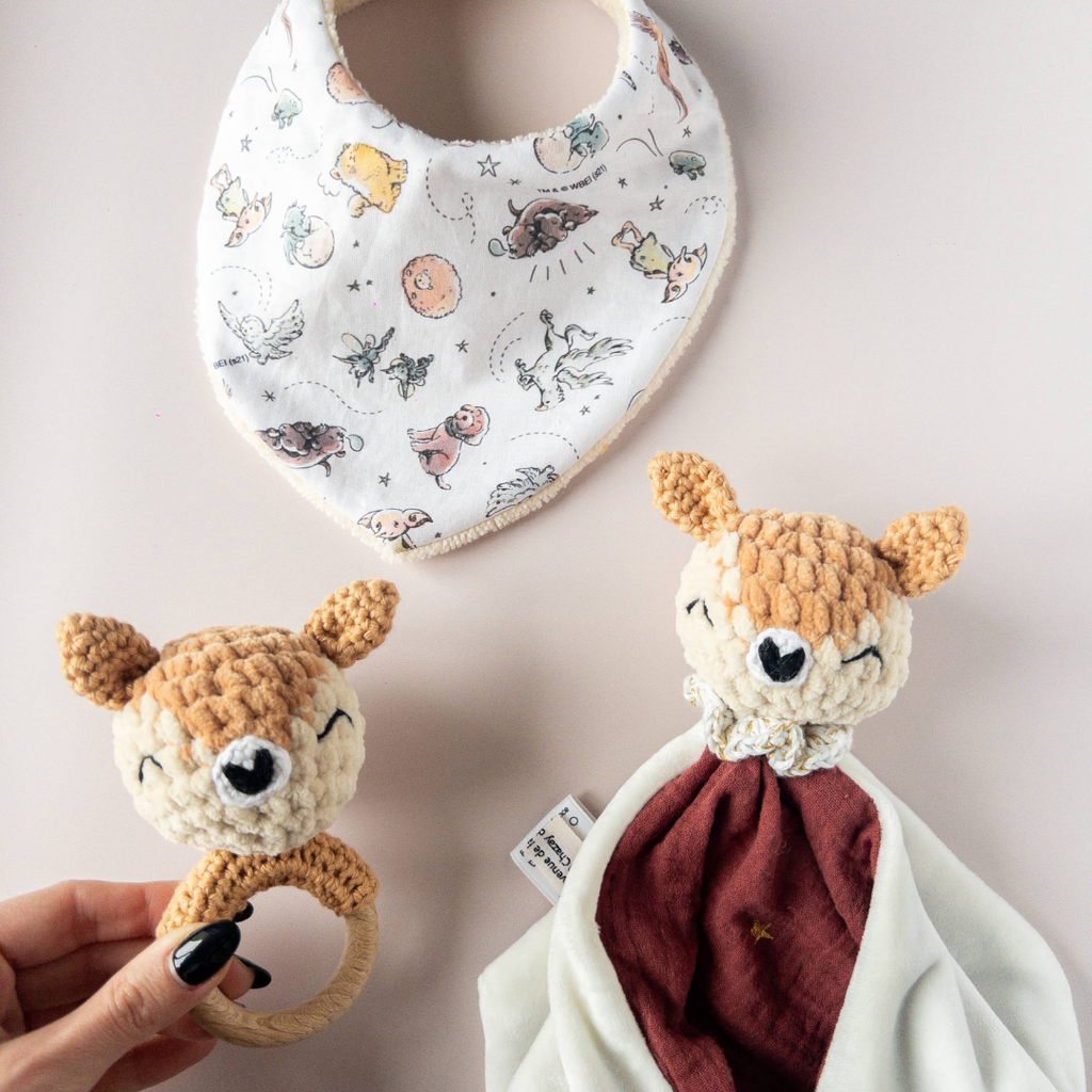 Chez Fée à demain, nous croyons que chaque bébé est unique, c'est pourquoi nous offrons la possibilité de personnaliser chaque jouet avec la/les couleur(s) de votre choix.