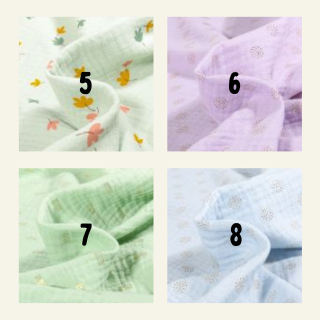 Personnalisez votre doudou faon : choisissez la couleur de la collerette et le tissu (double gaze de coton) du doudou parmi une sélection (voir photos).