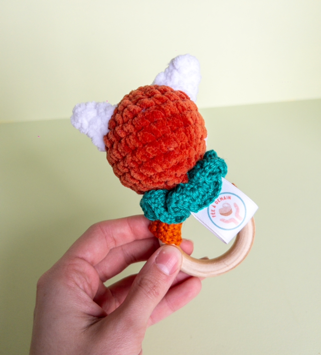 Ce joli hochet panda roux bimatière est adapté à la main de bébé et fait du bruit lorsqu'on le secoue pour lui permettre de développer ses sens et sa motricité.